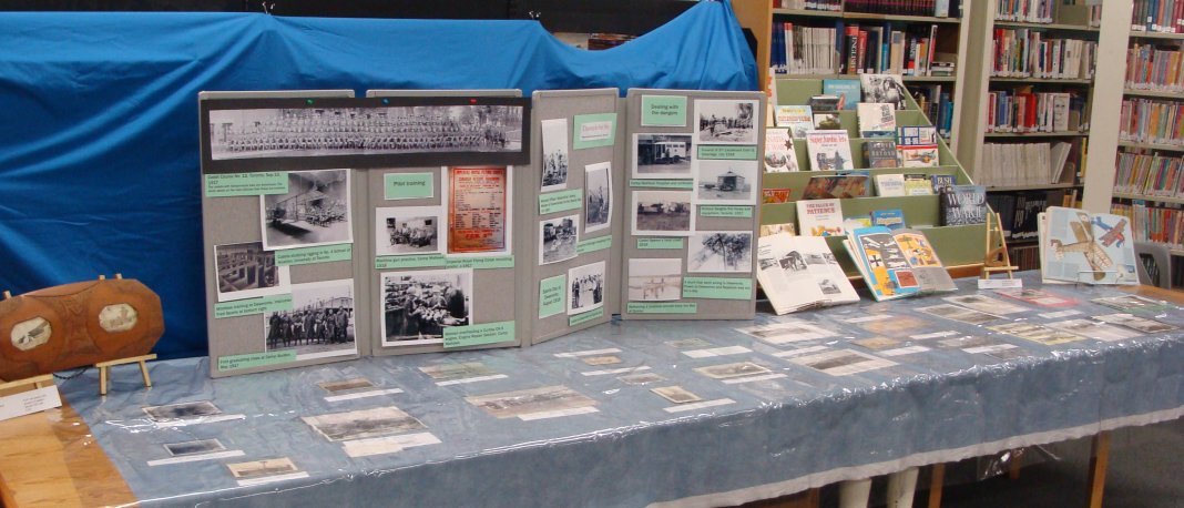 Bill was at pains to point out how important the archival record has been in helping him to research this volume: the diaries and photographs left by the young pilots have been a wonderful resource. Music to an archivist’s ears! We put together a display of photographs from the book, library books and original materials from the Deseronto Archives’ collections, as a side-show to the main event:
