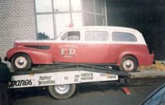 This vehicle was once owned by the Deseronto Fire Department. It’s a Cadillac LaSalle, dating from 1937. It is now in France and has been restored by the current owner, who has painted it in the colours of a US Army ambulance.