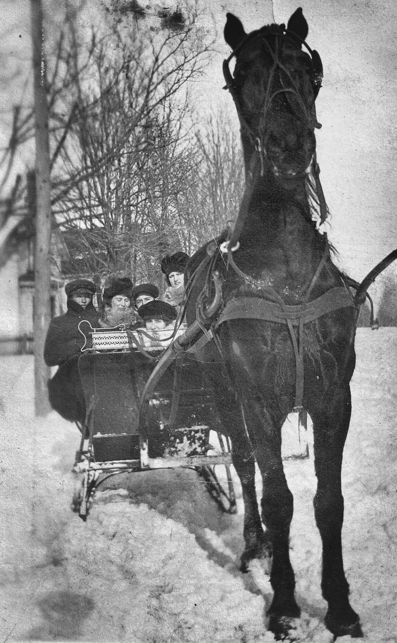 This festive photo was one of a small collection recently donated to the Archives by Bev Boomhour. It shows members of the Cole family on a sleigh ride. Bev remembers the sleigh, but doesn’t think she ever rode in it herself.