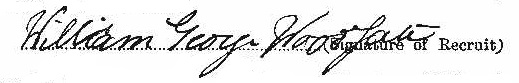 Woodgate joined the 155th Battalion of the Canadian Expeditionary Force with the regimental number 637032. He had military experience in the Royal Marines. He was later transferred to No. 3 Special Service Company. He was described as five feet eleven and three quarter inches tall, with a fair complexion, blue eyes and brown/grey/bald hair. He had tattoos on his arms: a lady in pannier dress on his right forearm and a crown with other devices on his left. His service record shows that he served in Canada for the duration of the war and was suffering from an inguinal hernia. William was discharged from Camp Barriefield in Kingston on January 23rd, 1919, with the rank of sergeant. In 1921 he and his wife and three daughters were living in Humberstone, Ontario and William was working as an engineer.